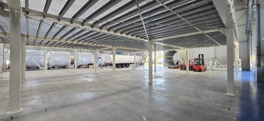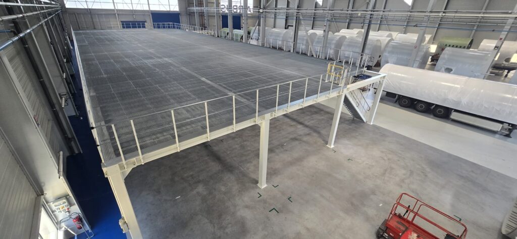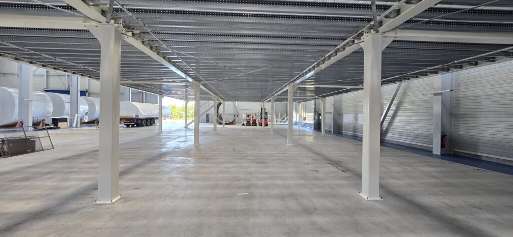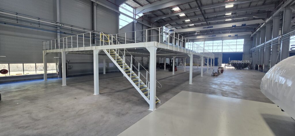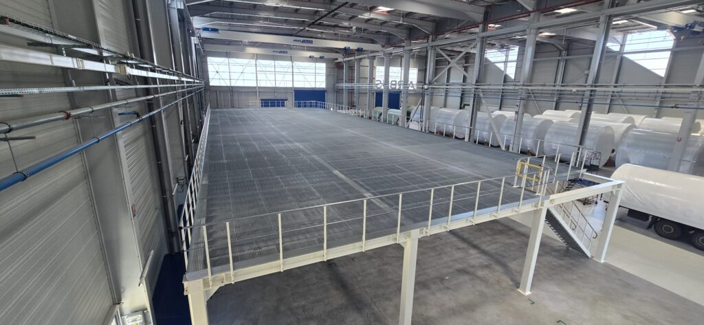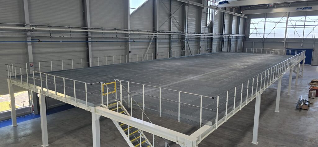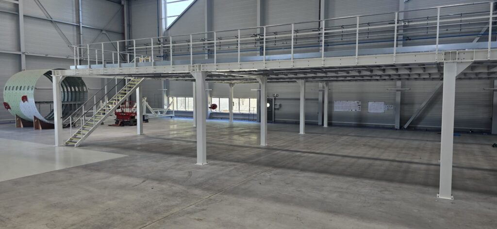 Antresola o powierzchni 794 m², która podwaja pojemność magazynową kadłubów samolotów