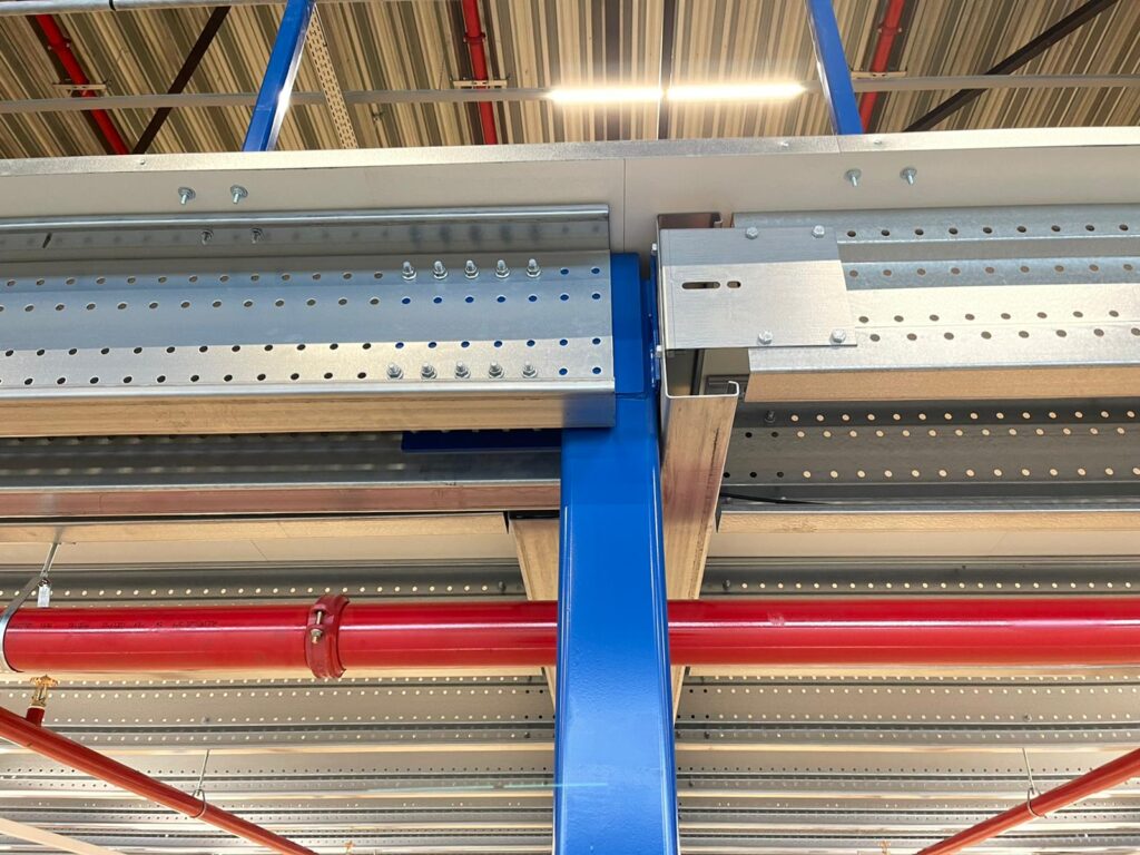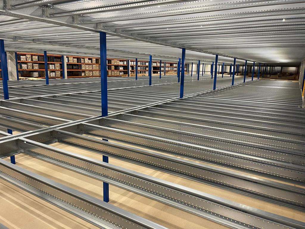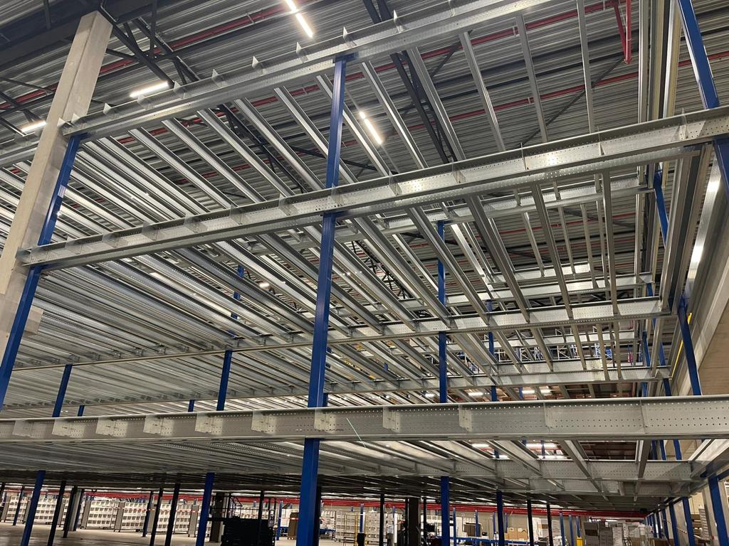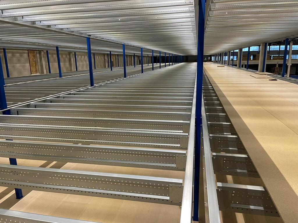 Antresola została zbudowana na trzech poziomach: +3 000 mm, +6 100 mm i +9 000 mm. Dla stabilności zastosowano konstrukcję portalową, zapewniającą maksymalną nośność przy minimalnym ograniczeniu przestrzeni poniżej. Podłoga została zaprojektowana specjalnie do przechowywania i kompletowania odzieży, z naciskiem na otwartą przestrzeń i logiczny układ. Nolte Mezzanine poprowadziło cały projekt – od koncepcji po odbiór – z naciskiem na planowanie, elastyczność i ścisłą współpracę.
