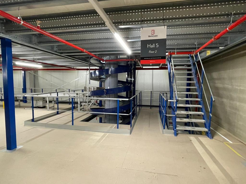 Bleckmann potrzebował dodatkowej przestrzeni do magazynowania i ręcznego kompletowania zamówień na odzież. Wyzwanie polegało na maksymalnym wykorzystaniu wysokości budynku bez ograniczania parteru, który musiał pozostać wolny dla dużych elementów. Rozwiązaniem była trzypoziomowa antresola, idealnie dopasowana do potrzeb logistycznych firmy.