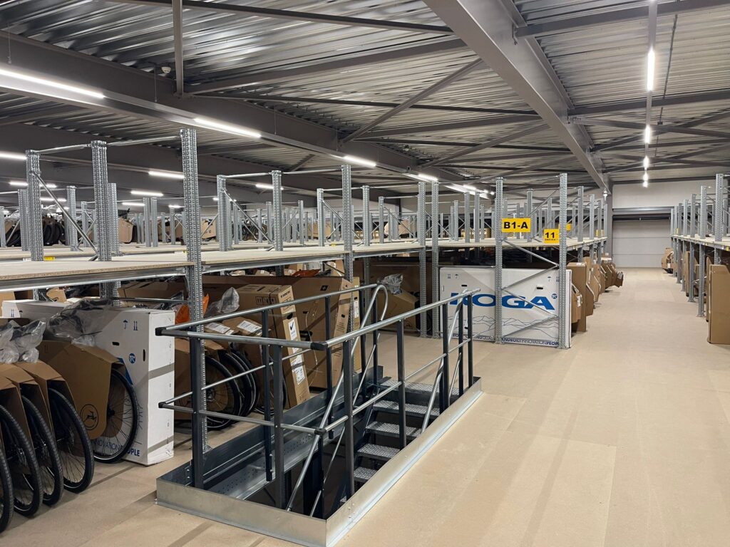 Antresola o powierzchni 2 052 m² tworzy dodatkową pojemność magazynową i efektywne lokalizacje pickingowe dla rowerów w Heerhugowaard