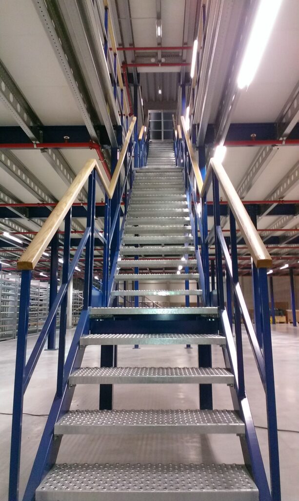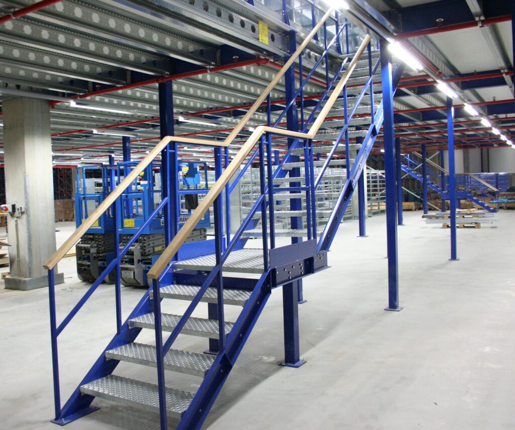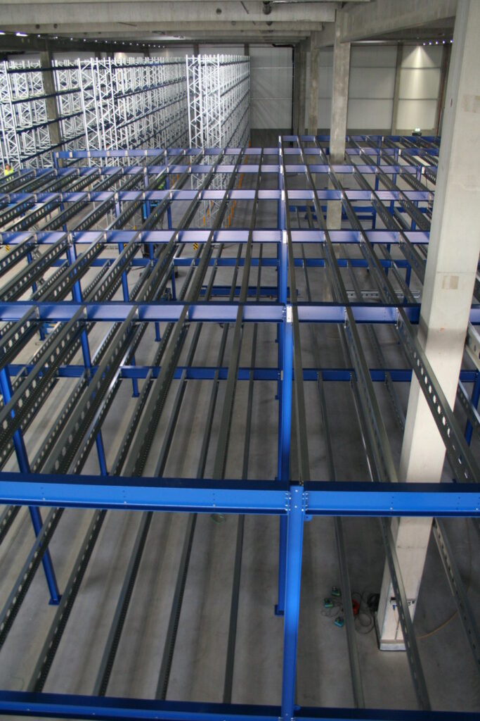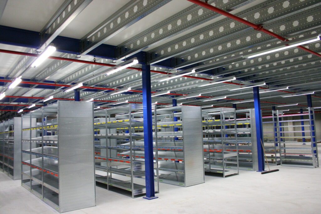 Dla Kühne und Nagel firma Nolte Mezzanine zrealizowała dwupoziomową antresolę o łącznej powierzchni 1 800 m². Konstrukcja składa się z profili giętych na zimno i walcowanych na gorąco, wsparta siatką słupów 5 000 x 5 000 mm i wykończona podłogą z płyty wiórowej. Dzięki temu projektowi istniejąca powierzchnia 800 m² została skutecznie powiększona do 2 400 m² przestrzeni magazynowej i pickingowej, bez ograniczania elastyczności na parterze.