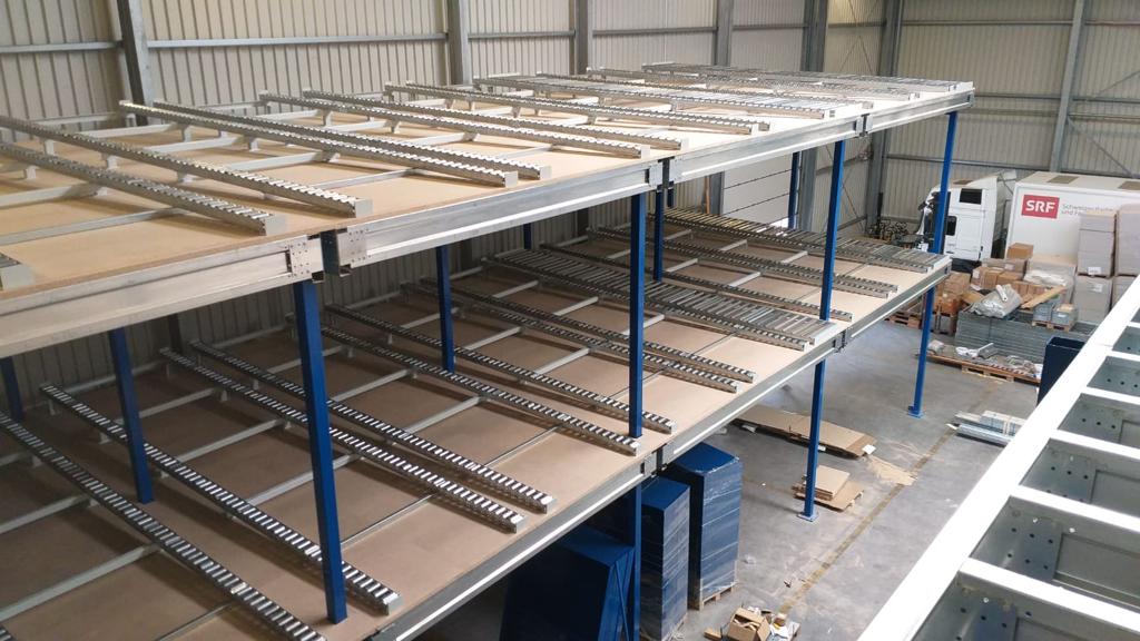 Aby sprostać potrzebom magazynowym SRF, firma Nolte Mezzanine zaprojektowała i zainstalowała dwupoziomową antresolę na wymiar. Podłoga ma powierzchnię 3540 m² oraz wysokość 4650 i 7450 mm. Dla dodatkowej stabilności konstrukcja została wyposażona w stężenia krzyżowe. Antresola została specjalnie zaprojektowana zarówno do przechowywania, jak i usprawnienia procesów kompletacji i składowania.